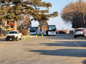 SEVERAL BUSSES SHUTTLED WELLS EMPLOYEES TO THE LE MARS CONVENTION CENTER FOR AN ANNOUNCEMENT AT 9:30 THIS MORNING.