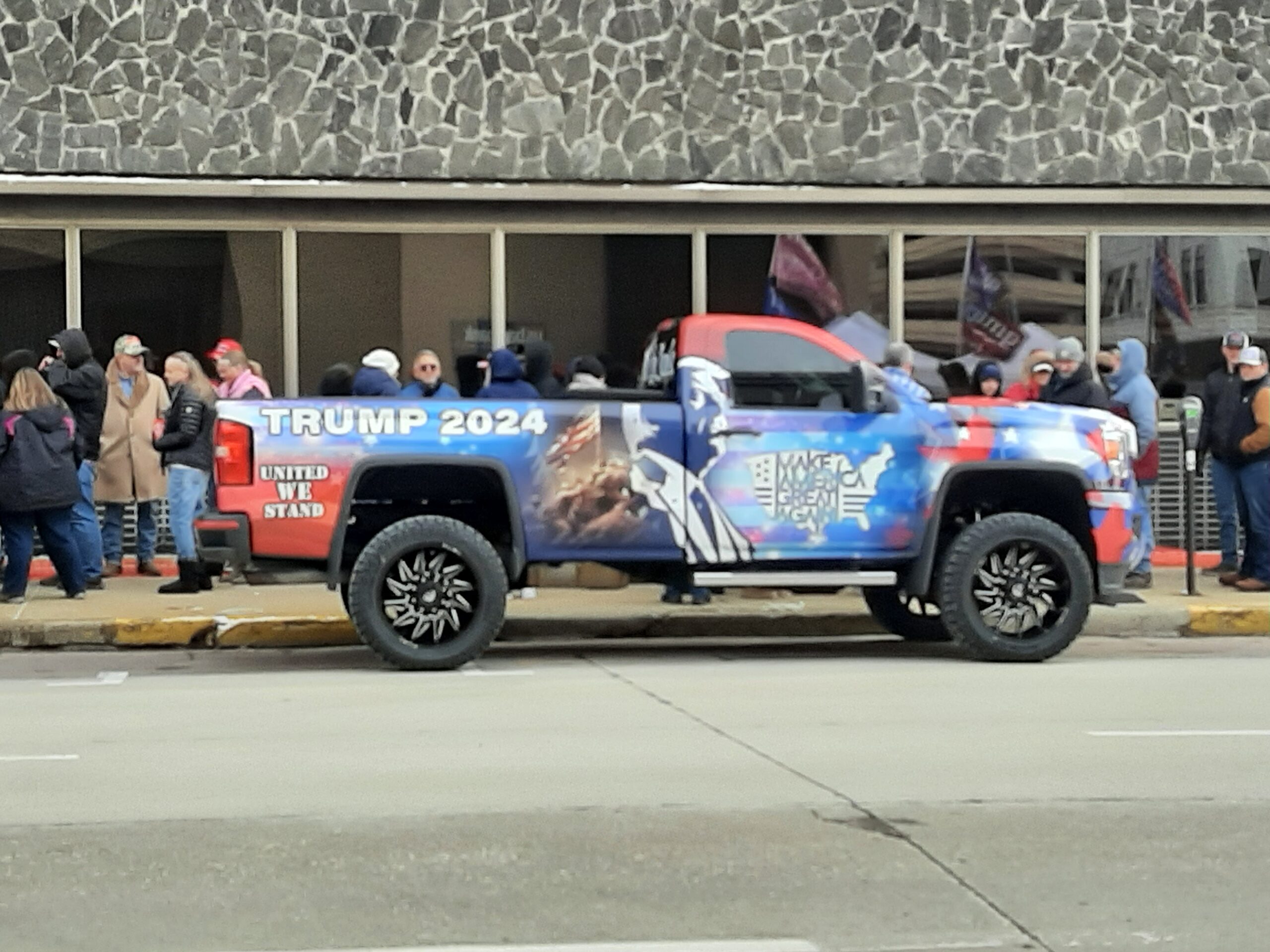 FORMER PRESIDENT DONALD TRUMP SPOKE TO A CROWD OFF AROUND 2400 PEOPLE AT SIOUX CITY’S ORPHEUM THEATER SUNDAY AFTERNOON IN THE LATEST STOP ON HIS REPUBLICAN PRESIDENTIAL CAMPAIGN.