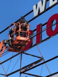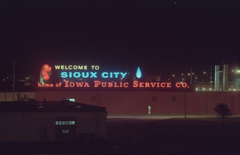 THE ICONIC “WELCOME TO SIOUX CITY” SIGN, WHICH HAS BEEN A LOCAL FIXTURE SINCE 1957 OVERLOOKING INTERSTATE 29 OFF OF DACE AVENUE HAS BEEN TAKEN DOWN FROM ATOP THE FORMER MIDAMERICAN ENERGY BUILDING.