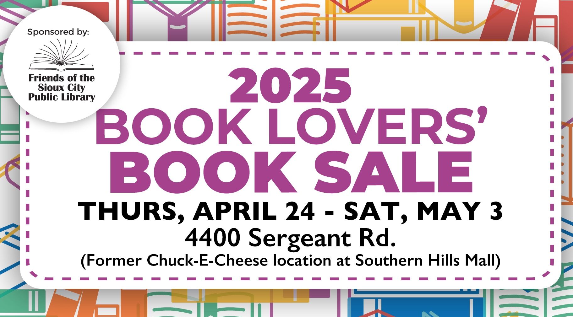 FOLLOW THE FRIENDS OF THE SIOUX CITY PUBLIC LIBRARY FACEBOOK PAGE FOR SALE UPDATES ON HALF-PRICE