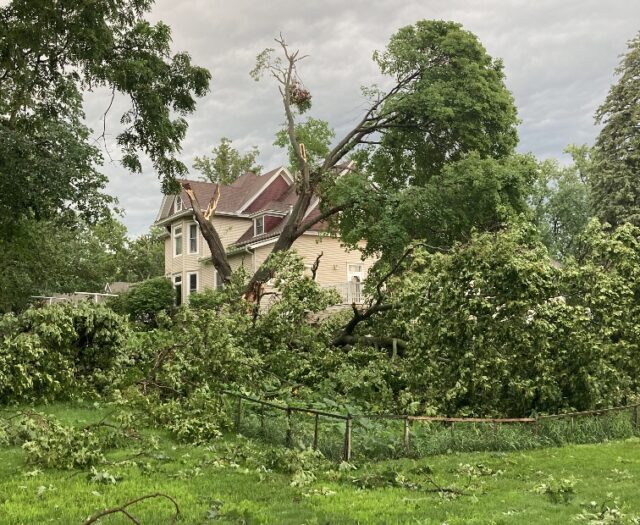 CLEANUP IS CONTINUING IN NORTHWEST IOWA AND SOUTHEAST SOUTH DAKOTA FOLLOWING MONDAY NIGHT’S SEVERE STORMS WITH STRONG WINDS OVER 90 MILES AN HOUR AND TORRENTIAL RAINS THAT TOOK DOWN TREES AND POWER LINES.