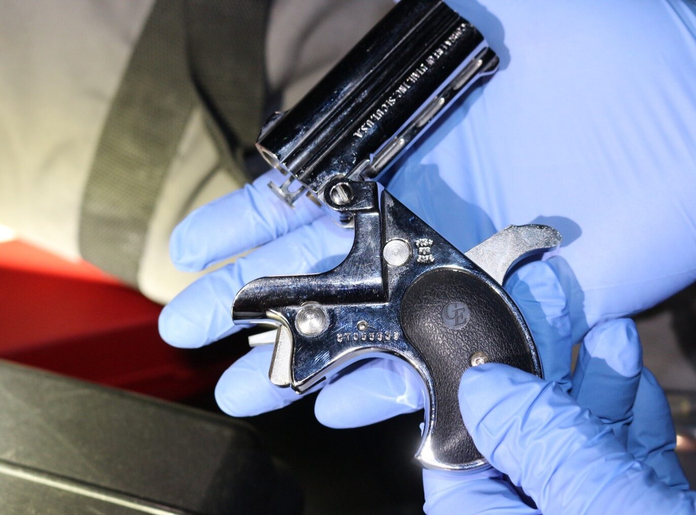 PEARSON REACHED HIS VEHICLE AND TOOK A 9MM DERRINGER STYLE, TWO-BARRELED PISTOL FROM THE TRUCK AND POINTED IT AT THE OFFICER.
