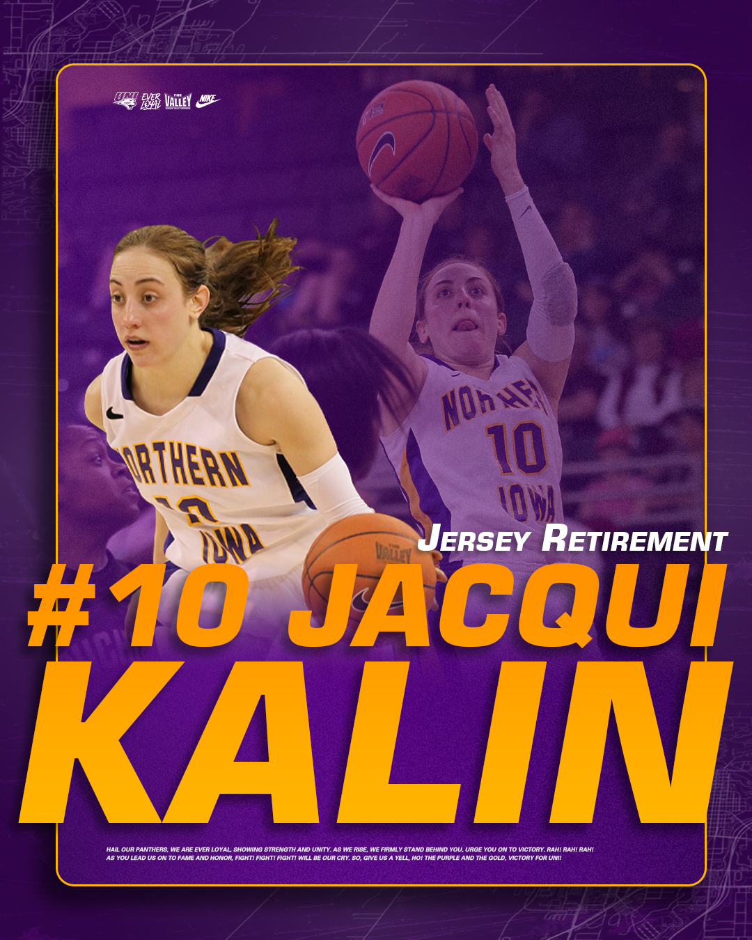 CEDAR FALLS, Iowa — Jacqui Kalin, one of UNI’s most decorated women’s basketball athletes of all time, will be recognized on Saturday afternoon inside the McLeod Center as UNI Athletics retires her jersey in a pregame ceremony during its Missouri Valley Conference (MVC) home game against UIC.