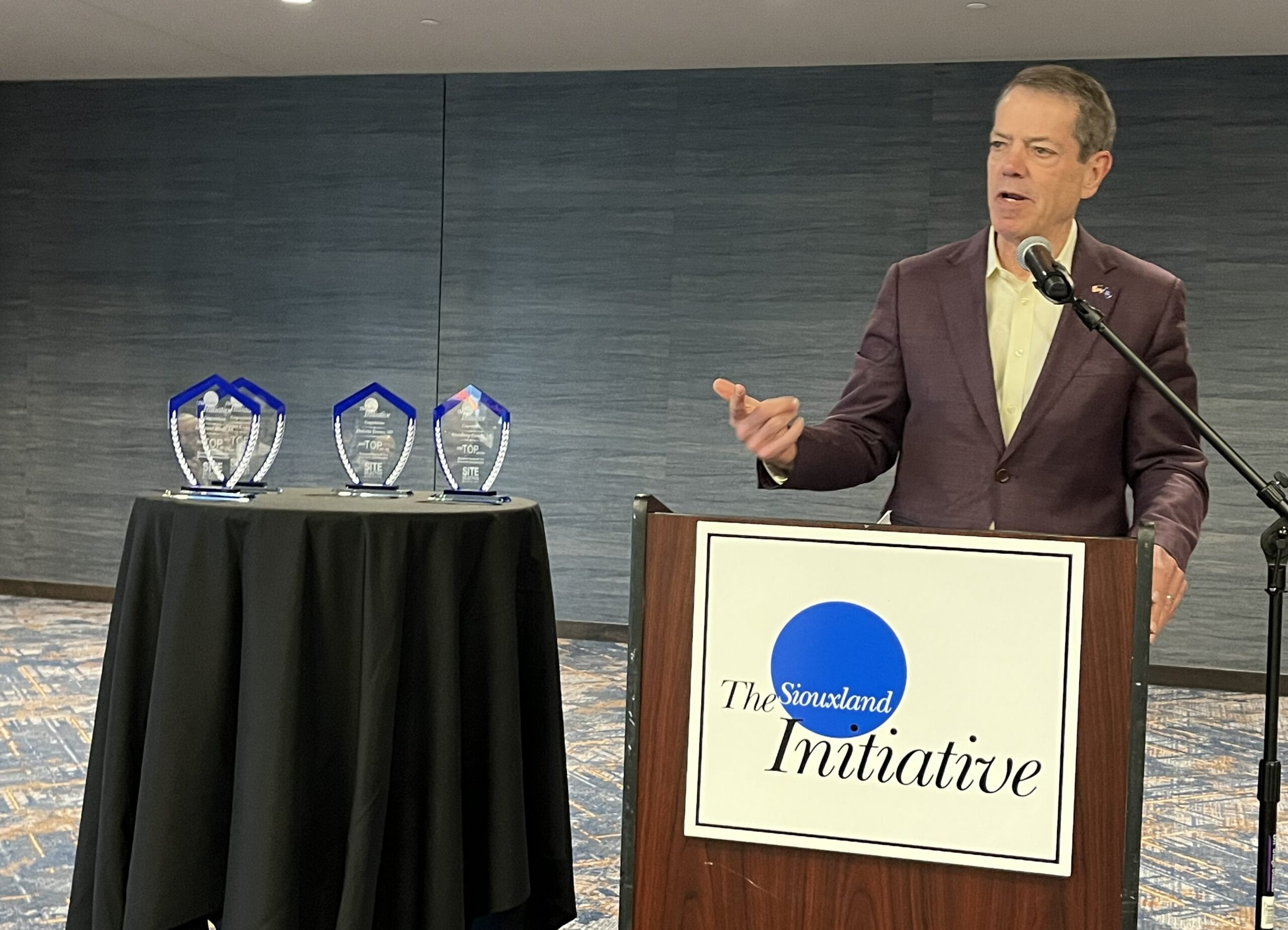BRUNS PRESENTED THE AWARD TO NEBRASKA GOVERNOR JIM PILLEN, THE FIRST TIME GOVERNOR PILLEN HAS ACCEPTED THE AWARD ON BEHALF OF THE SIOUXLAND METRO: