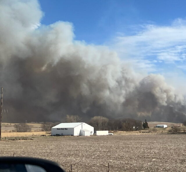 A MAJOR GRASS FIRE SATURDAY AFTERNOON HAS CAUSED HIGHWAY 20 IN WOODBURY COUNTY TO BE CLOSED BETWEEN LAWTON AND MOVILLE.