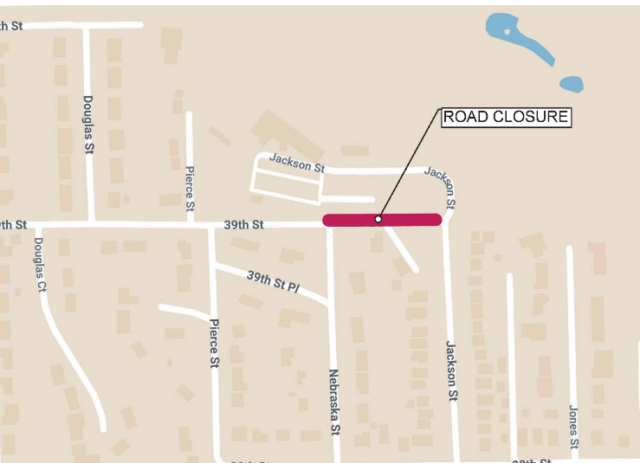 THE TIME FRAME FOR REPAIRS ON 39TH STREET BETWEEN JACKSON TO NEBRASKA STREETS HAS BEEN EXTENDED A WEEK.