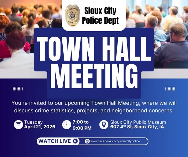 SIOUX CITY POLICE WILL CONDUCT THEIR ANNUAL TOWN HALL MEETING TUESDAY AT THE SIOUX CITY PUBLIC MUSEUM.
